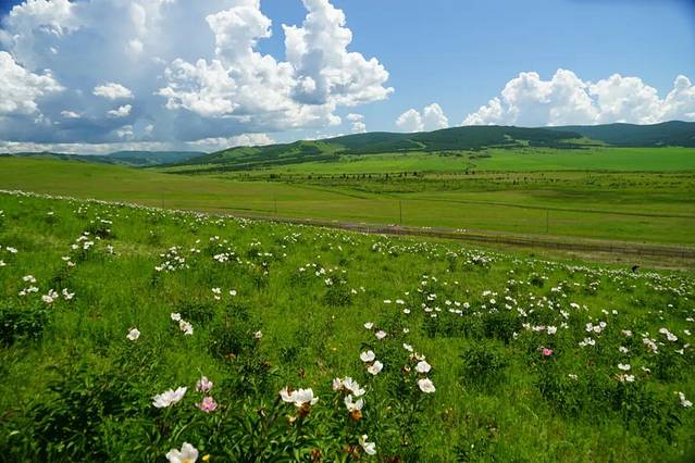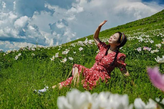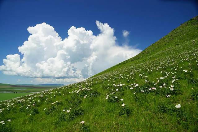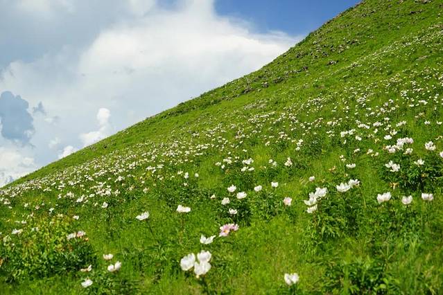 芍药坡上芍药花开,这份意外之喜难能可贵!来的第一天就听高哥说八卡芍药山的芍药花开了,芍药花期比较短,仅能维持一周,我们运气比较好,花开才两三天,刚好进入盛花期!于是乎一路上带着期待也带着一点忐忑,期待着看到漫山遍野芍药花开的美好,又忐忑花朵是否禁得起草原上风雨的打磨~