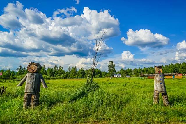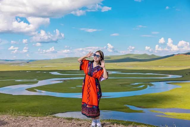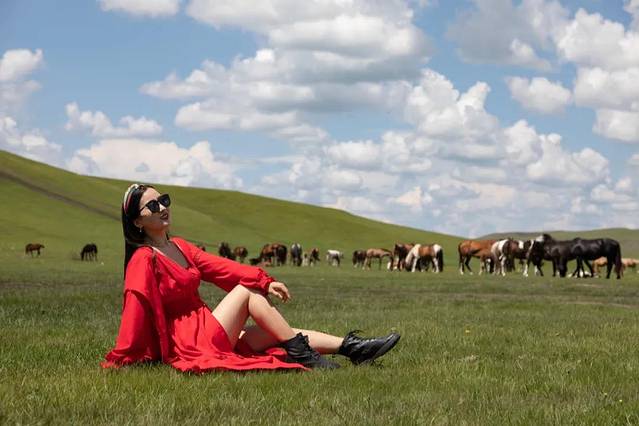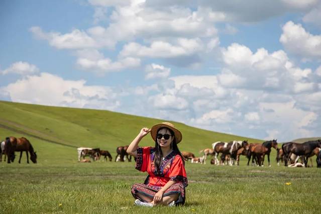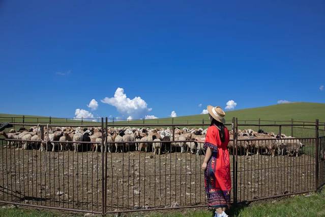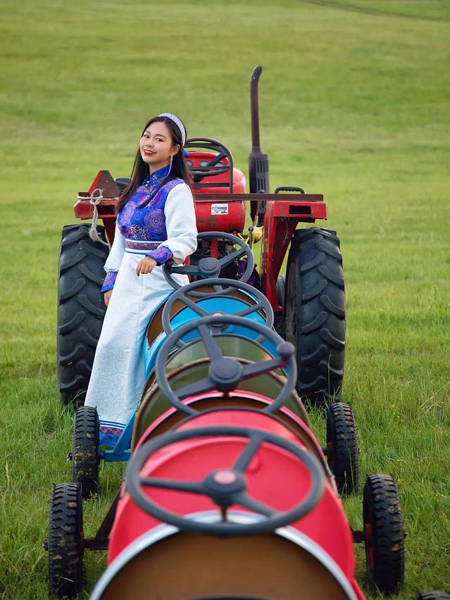 在这里可以租一声蒙古装,然后去草原上给自己拍一组民族风写真,可以尝试着去给奶牛挤奶,也可以去草坡上跟羊群合照,也可以跟稻草人互动,或者是去开个小火车~