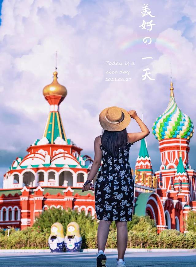 我们没进去掏门票钱,就在外面广场上拍了一些照片,你还别说也真的挺好看。单纯拍照的话,不进去是完全ok的,在大马戏剧场外面的广场上,背后就是套娃景区的城堡,出片率也是超高的~