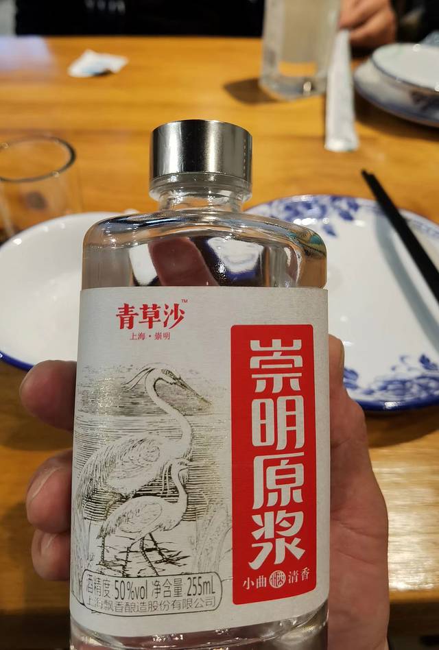 这家饭馆一溜排的一共有七、八家菜馆,中间是一家“我在杭州等你”的酒吧,都尝过味道了,最旁边,还有一家小超市,有来自上海市崇明岛的崇明原浆,有一种亲切感,最终,我选择了这家私藏,理由只有一个:有感觉。