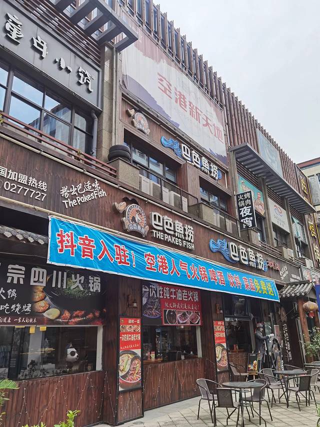网上是这么介绍的:空港新天地是一个MALL布局,呈现社区化、情景式、互动型生活方式的时尚生活街区,有全天候的餐饮美食街、酒店式公寓、精品酒店、巨幕影院、美食广场、量贩KTV、品牌超市等多种业态,当地人也介绍说,这里有吃有喝、有玩有乐,于是打卡去了。