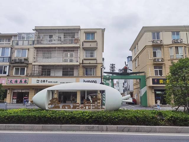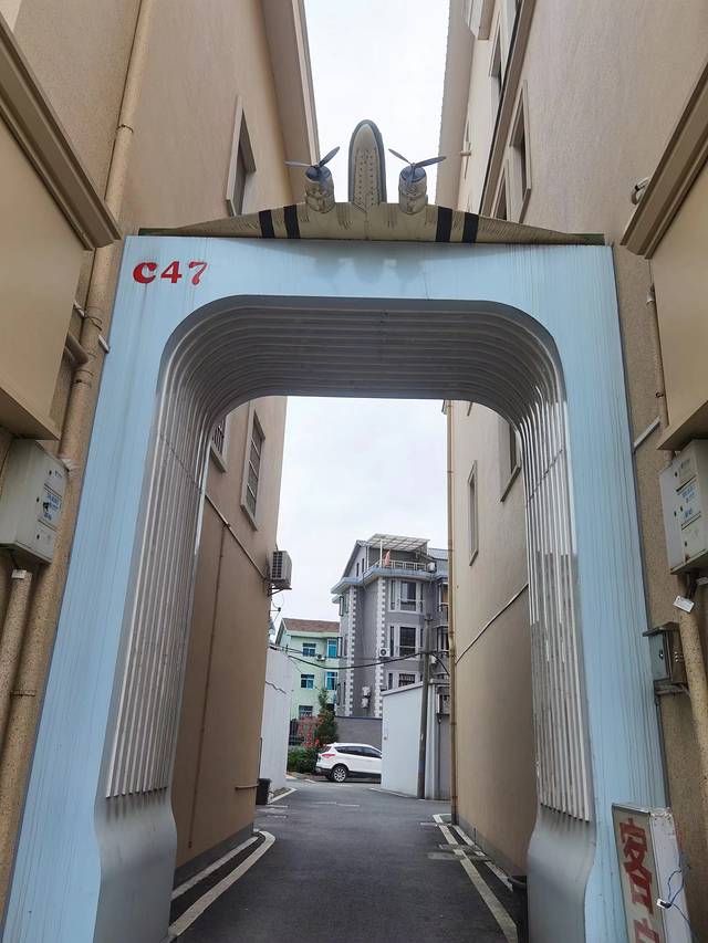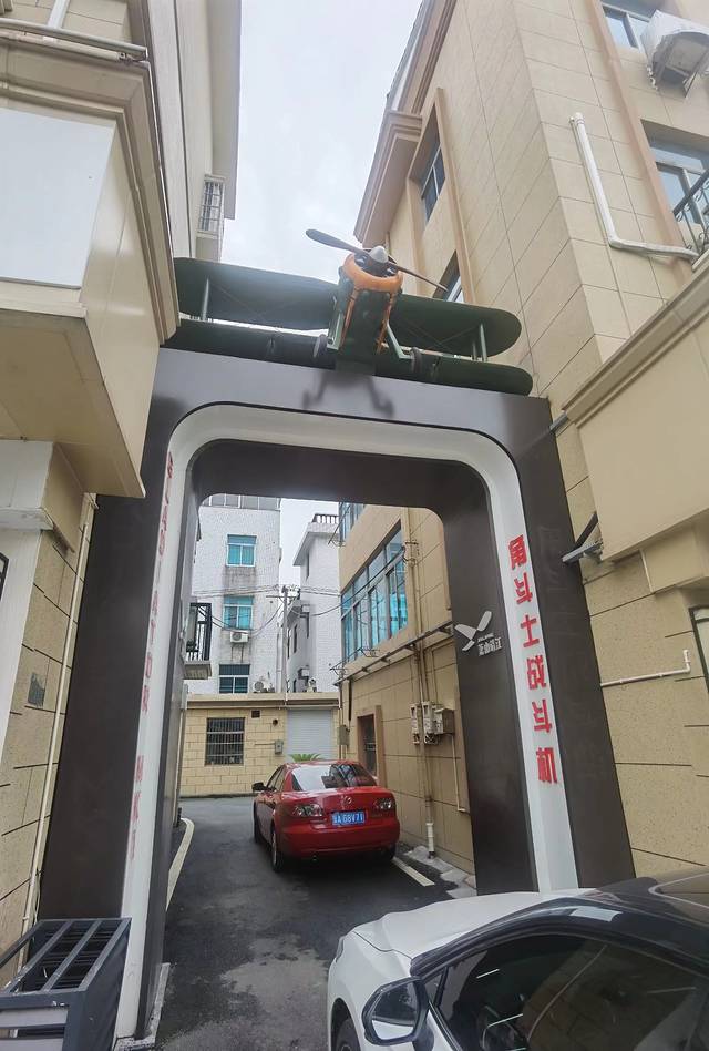杭州萧山靖江的街头,有一个奇特的现象,街头主干道的各个小区大门,都有一架飞机模型,还有公交站站点也设计成了飞机的形状,无形之中,形成了一道风景线,我以为,这个与众不同,是把杭州的萧山机场关联起来了。