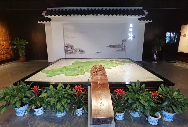 这里是南宋皇城德寿宫遗址的西南角,也曾是吴昌硕的居所,馆内主要由内部展陈和外部庭院两部分组成。按照地方志“横排门类、纵述史实”的原则,馆内一共设有8个展厅:概览(杭州概览)、山水(灵秀江南)、政治(政通人和)、人物(人杰地灵)、文化(文化渊薮)、经济(物阜民丰)、社会(民俗风情)、方志(修志问道),馆内还保存收藏了旧志典籍、志书、年鉴等地方文献1561种。
