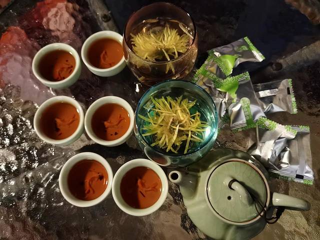 城隍阁的茶室很有特点,南宋风格设计,服务人员都着装南宋服饰,还有古筝表演等,很有一种时代穿越感,88.00元/位的单人尊享套餐里,有西湖茶点一道、吴山小吃一道、时令水果一道、精美茶食一道,还可以龙井绿茶和九曲红梅二选一,喝喝茶、唠唠嗑、看看景、听听曲,生活就是这样的惬意!