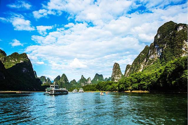 4个小时左右的船程,看山看水,看蓝天看白云~波光粼粼,偶尔见几条漓江鱼~