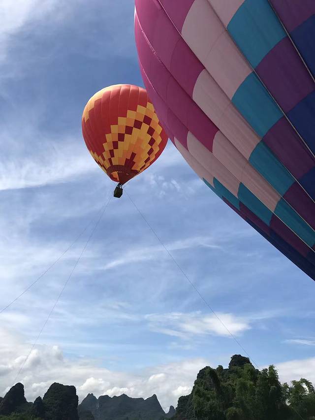 那个女生没有热气球的梦,如果到不了土耳其看成群的热气球,来阳朔俯瞰山水也不错,随着热气球慢慢的升起,视野越来越宽广~