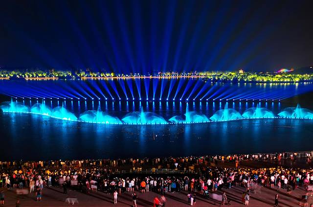 吃过晚饭,可以选择看音乐喷泉,还是从湖畔里的口进去,喷泉时间周末的8:00-8:20,平日没有,也是免费。建议7点半左右往里走,看喷泉遛弯儿的本地人很多,晚了可能没有好的位置,建议带个伞,喷泉最高可以喷10米高,有风的时候可能会飘到身上。