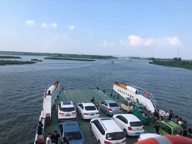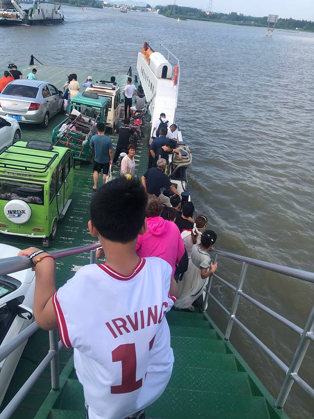 终于到轮渡大门口了,本来是没打算上轮渡的,想在门口的那个农家找个船去摘荷花,结果路给拦上了、一条道堵到轮渡口