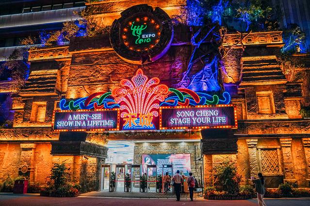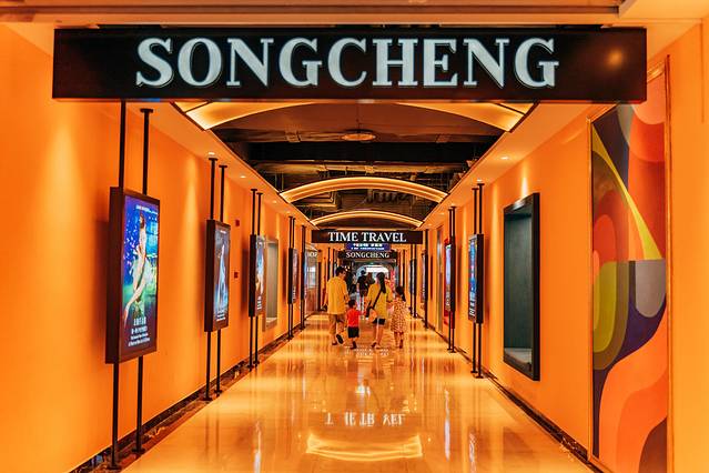上海宋城坐落在黄浦江畔,这栋七层楼高的建筑里面包罗万象 ,可以说是集剧院餐饮购物休闲于一身的大型演艺公园。