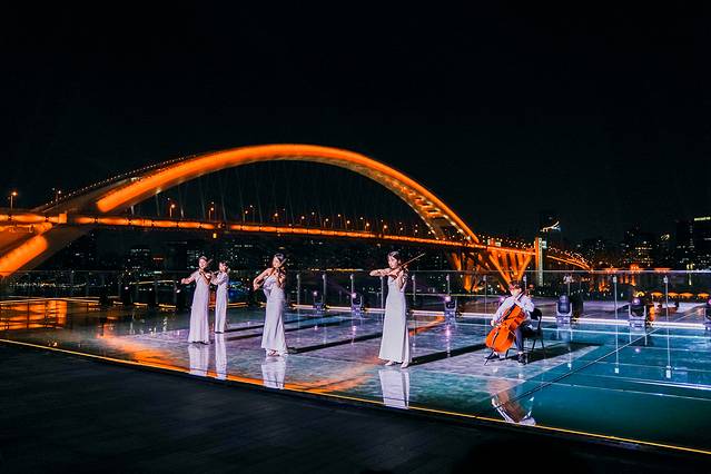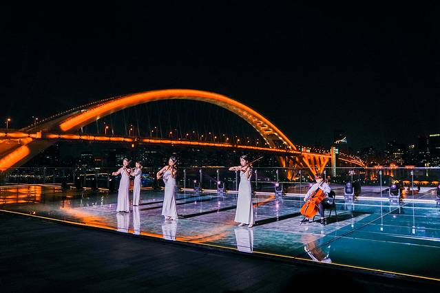 前面说了 上海 宋城坐落在黄埔江畔。而悬崖音乐会则是在顶楼的露台上举办。所以大家不仅可以饱览黄 浦江 璀璨的夜景,还能体验视听艺术的享受。