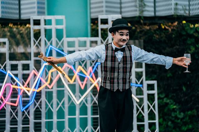 如果碰巧错过了表演时间也没关系,《你好!卓别林》不止一场。我们离开前又看到了“卓别林”先生,依旧认真,依旧投入,相当的敬业。这不仅让我想到了周杰伦的《乔克叔叔》。