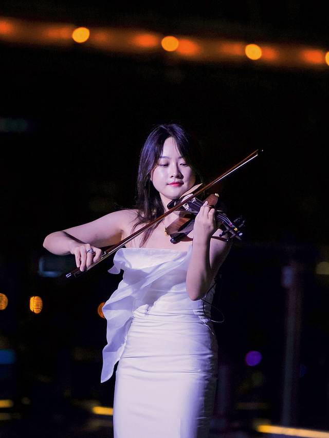 比起传统的小提琴,电子小提琴音色更纯净,而且音量可控,更能胜任多种不同场地的演奏。小姐姐们演奏了不少大家耳熟能详的歌曲,特别是《夜来香》和《相思河畔》音乐响起,不禁让人陶醉其中。