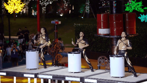 先是一段激情的打击乐表演,全场的气氛瞬间被带动了起来~