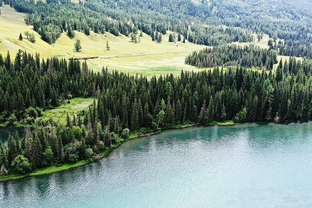 地如其名,可可托海很美,我国唯一注入北冰洋的额尔齐斯河从小镇穿过,造就了河沿岸壮美的风光,也孕育了大片的原始森林。