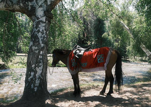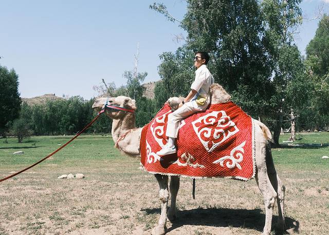风景优美,绿植众多、还能看到远处正在安逸晒着太阳的骆驼和几匹马
