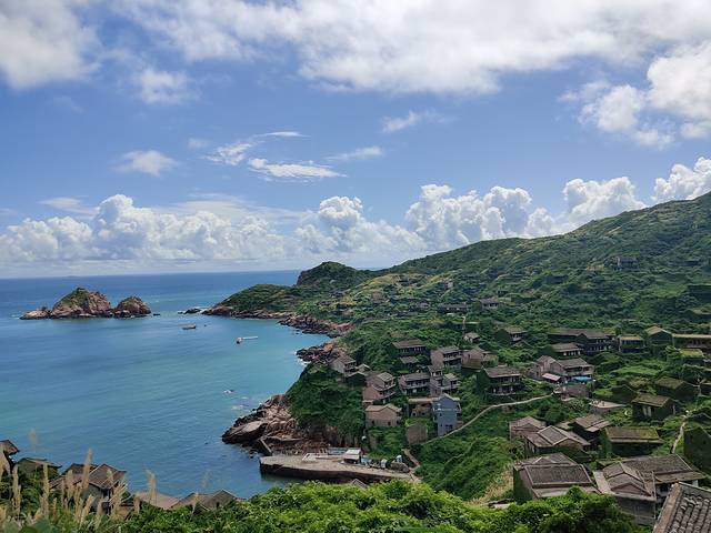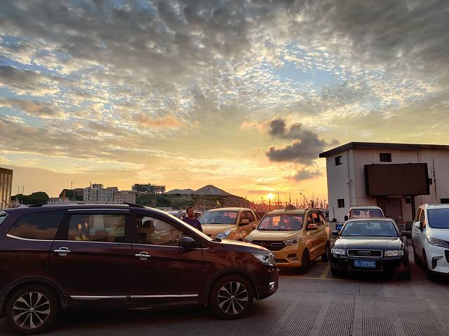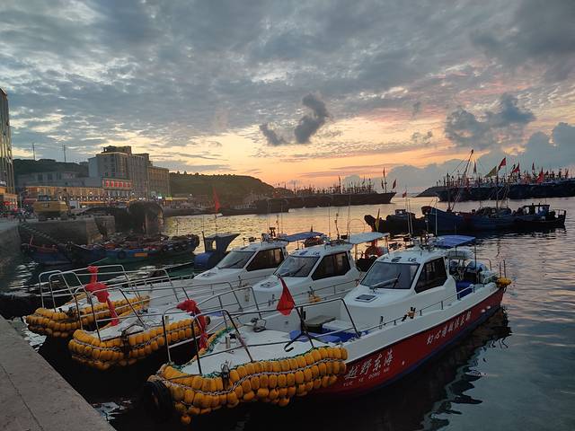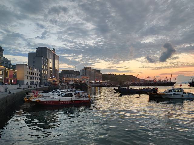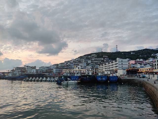 因为是休渔期,船都停在港口里。一开始我还以为这些船是为了好看,特意安排的呢,哈哈。