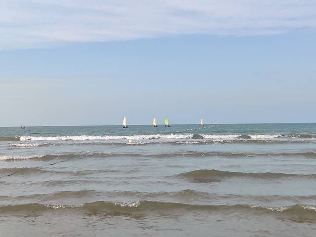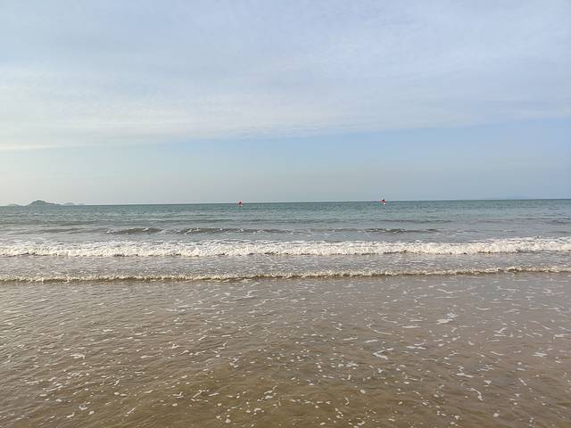 从杭州出发,到宾馆已经是下午3点多了。放下行李,原本打算去环岛骑行,但是因为已经租不到电动车了,所以就改去基湖沙滩玩水。听同事说基湖沙滩的沙滩是人工沙滩,所以沙子和海水都比较干净。当然,因为是景点而且旅游旺季,所以沙滩人很多很多很多.......(总结一下就是人山人海,哈哈哈),当然人工沙滩是捡不到贝壳的。