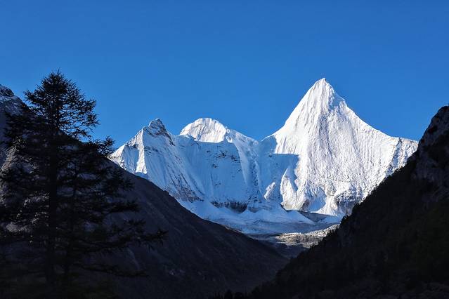 早上7点半起床,坐了10多分钟车到了景区,排队坐上了景区大巴。最近人真的很多。大约坐了40分钟车,到了下车点,走几分钟就到了冲古寺,三神山主峰仙乃日就在冲古寺后面,交相辉映,景色很美。