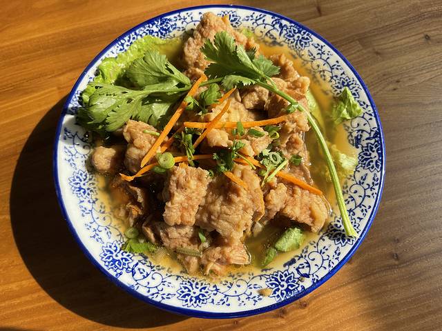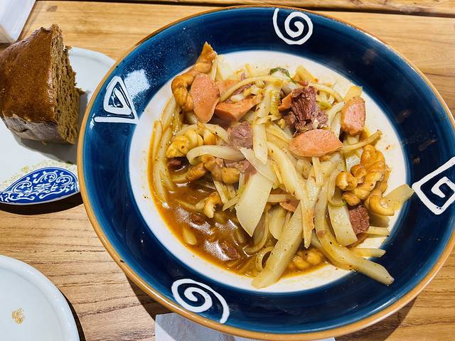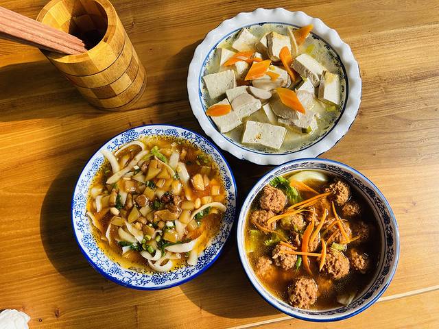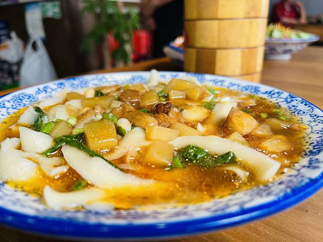 刀削面面食是山西的特色,他们家都是纯手工刀削面,汤汁都是大骨头熬汤,10块钱一碗,而且还管饱。