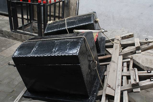 两个镖箱。箱内还装有暗锁,起到防盗的作用,需要用两把钥匙并排在一起才可以打开,由大掌柜和二掌柜分别掌管,起到一个互相监督的作用。