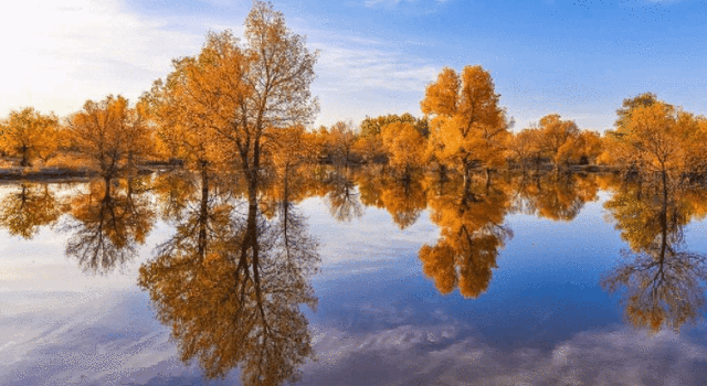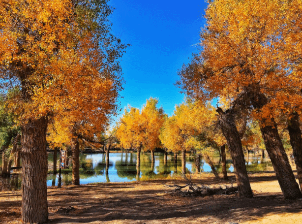 特别表扬“水境胡杨区”,太好出片了叭!胡杨与弱水交相凝望,置身其中,湖中倒影犹如仙境。