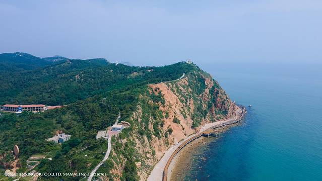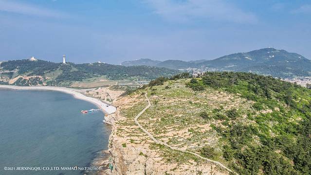 我们先坐车去到了景区的最高点烽山,“烽山”因明代抗倭名将戚继光为防海上倭寇入侵曾在峰顶设立烽火台而得名,海拔为148.8米,是整个长岛最高之处,天气晴朗的情况下,能看到长岛151座岛屿依次排列在渤海的海面上。
