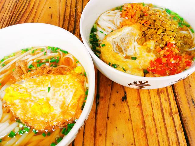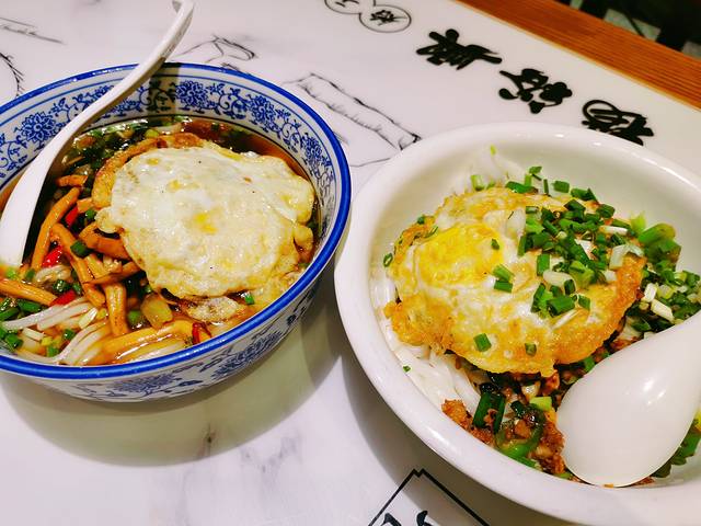 位于菜市场里一家小小的粉面店,超多旅客慕名而来。粉面买好,配料自己任加。闺蜜加了配料,我是裸吃,想尝尝是否小红薯说的这么赞的肉汤。奇怪的是没有配勺子,尝汤得直接怼。第一口下去的味道,就普普通通的汤粉嘛,吃到后面肉汤味越来越浓郁,作为早餐确实清新好吃醒胃。来岳麓山推荐顺道过来,向小红薯说特意过来为了吃有点夸张,也没那么的好。