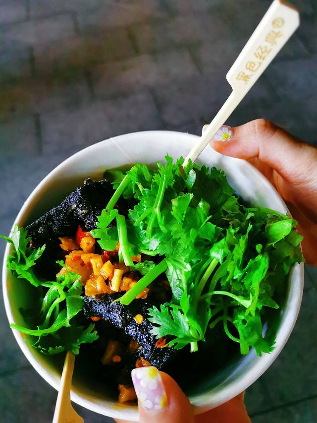刮凉粉,太平街上有很多摊,好像是在烤鸡隔壁买的。辣,便宜又好吃,酱料跟广东买的凉皮醋味浓又不一样,像是辣椒油底似的。