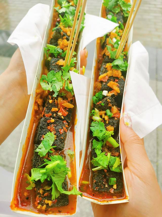 黑色经典·臭豆腐。吃了3个品牌,还是他家最好吃,但要马上吃,超过15分钟软掉口感会下降。只打算尝一下,必点他家。
