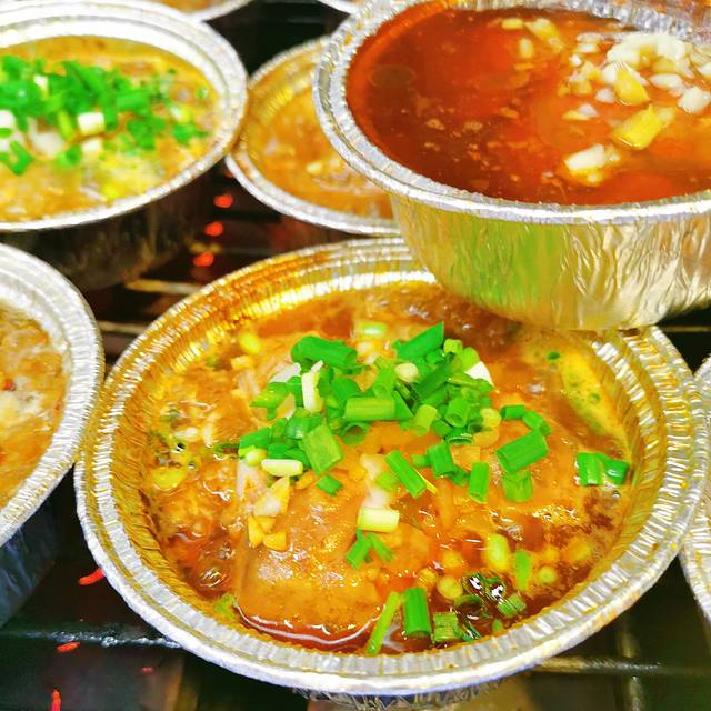 老担云吞·烤脑花,即烧烤辣猪脑,味道不腥,像豆腐,没吃过可以买1个一尝,普通普通咯
