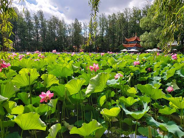 翠湖公园由湖、岛、亭台组成的园林公园,是附近居民休闲的好去处,此时正值荷花盛开的时候,湖边很多架着长枪大炮的摄影者。翠湖西门外是陆军讲武堂,这个在近代史中有着重要影响的军事院校,在民国时期与保定军校、黄埔军校齐名并称三大军校。讲武堂现作为历史博物馆,里面有很多爱国主义红色革命展览值得一看。整点时刻在入口处有士兵操练表演,网红文创雪糕售卖点在南边。小程序“游云南”对翠湖、讲武堂都有语音讲解,带上耳机就能自助游玩啦。