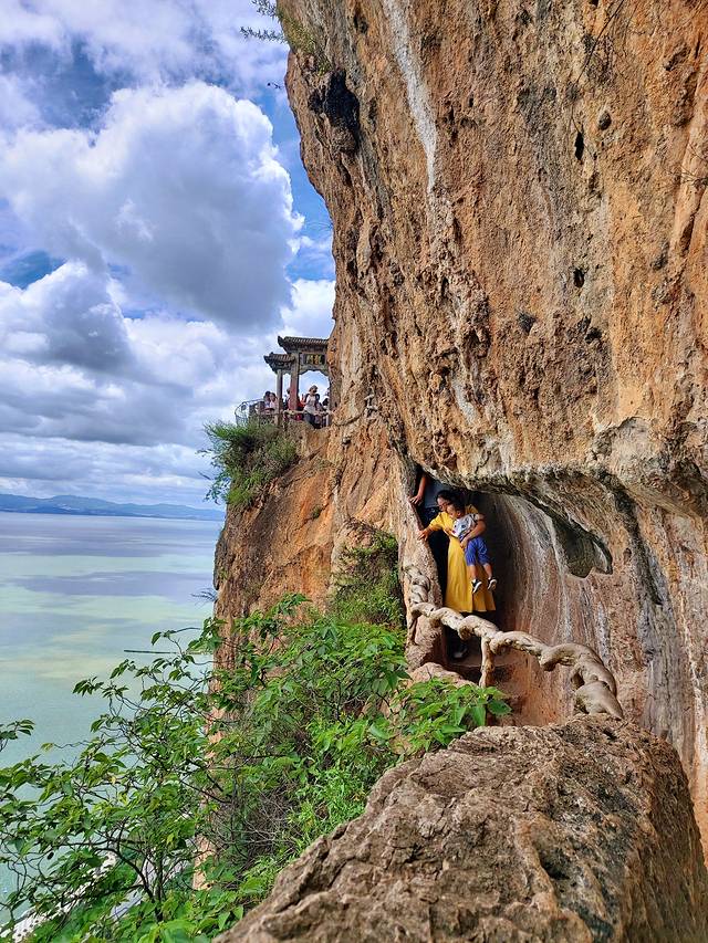 西山公园位于昆明西郊滇池边,在园区龙门景点可将滇池一览无遗,建议购买上下山车票+门票+上山缆车套票(OTA平台有优惠),下缆车后有导游免费讲解带领游玩下山。我们选了艰难的走上山,到游客中心才购票(门票+缆车),极简缆车对于我这恐高的人真的太不友好了,想起香港海洋公园缆车,同样是游走在山海上空,瑟瑟发抖。