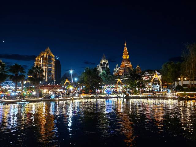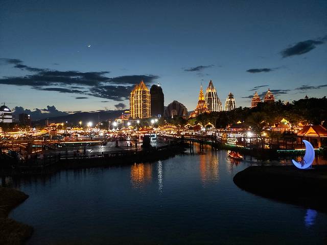 白天闷热安静的告庄到了晚上完全另一副模样,华灯初上99/199/299的写真小姐姐到处都是,这已经是一个成熟的产业链了。下午从原始森林公园回来还早(版纳夏季要晚8:30左右才天黑),在大金塔门口休息的时候遇到一位地陪,聊到傣族服饰其实是比较传统保守的,华丽的写真服是为了迎合游客及夜拍需求,告庄这个打造的旅游景点,地陪小姐姐总结了一句“东北人的生意,浙江人的商品”,很是贴切。