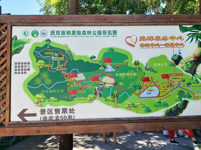 放置好行李,计划下午去原始森林公园。从告庄过去15分钟左右路程,这估计是离市区最近的一个景点了,到达景点可根据导览图和节目时间表游玩。雨季(5月至10月)下午在雨林里实在太闷热了,建议早上的时候去,最后一段沟谷雨林片区一定要徒步去走走。