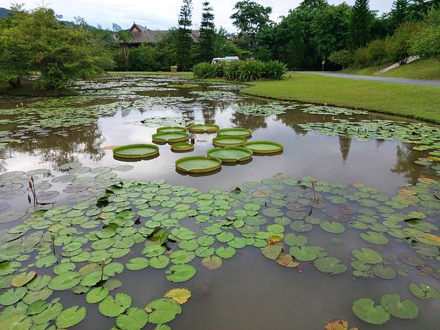 园区外的王莲,叶脉结构似伞架,浮力可承受六七十公斤重