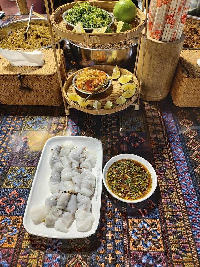 越南小卷粉,制作过程有点类似广东的肠粉,调制的米浆刷在板上加热熟后,加入剁成细末的各种香菇丁、肉末、榨菜等,然后用竹片滚成卷,青柠辣椒蘸料卤水,写着口水都要流出来了……