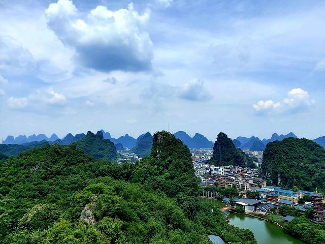 桂林喀斯特地貌的山都不是很高,但是有些地方比较陡峭,越是往上看到的风景越美。整个城市中不时的如春笋一般冒出一座座小山。