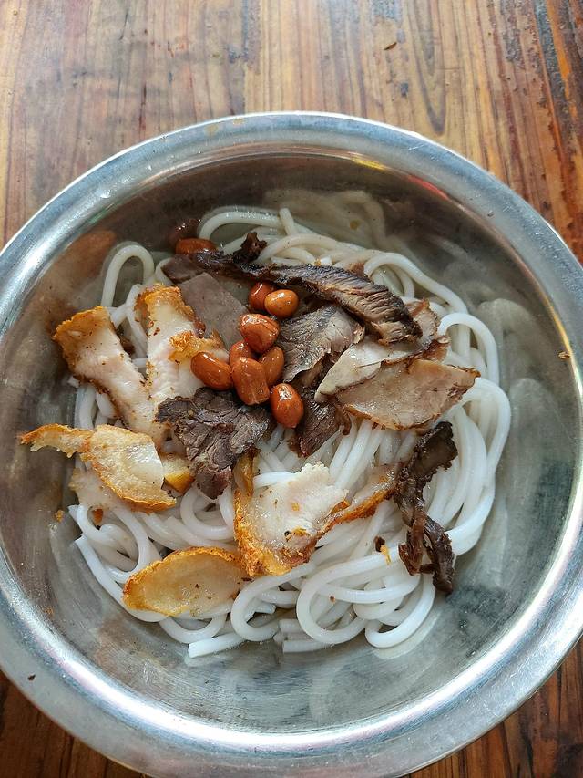 一大早准备去老东江嗦粉,这个开了30多年的老店,二两粉五块五一碗,还带锅烧和牛肉,真是太实惠了,卤水、酸笋、葱花、辣椒等调味按各自口味加,这碗粉不枉来桂林一趟。