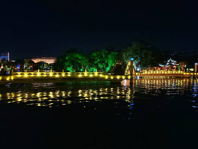 不知不觉走到象鼻山这个城市地标,天色也黑了,道路上穿梭着无数的旅游大巴车拉来参加夜游的游客,穿越人山人海见旁边一个漆黑的公园,赶紧钻进去,没想到走进了两江四湖景区。整个景区涵盖了江、湖、山大大小小的景点,正好刚吃过晚饭,围着杉湖、榕湖看夜景散步消食了。