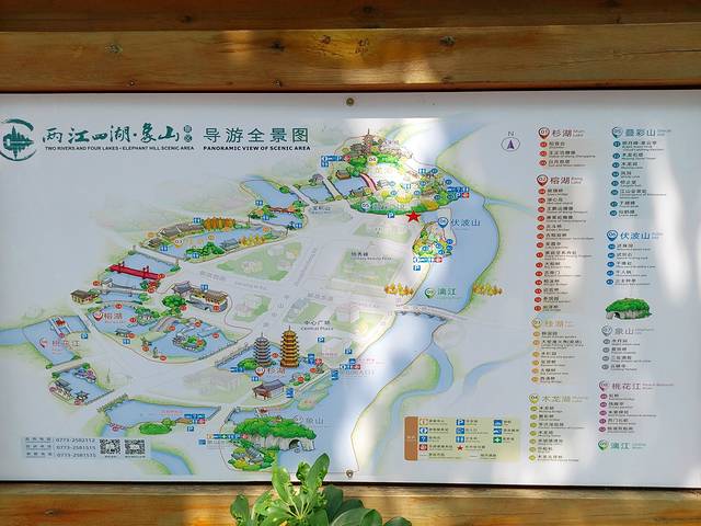 早上出来前问酒店前台,在桂林想要看山有什么好地方推荐,前台妹妹推荐了叠彩山。叠彩山也是两江四湖景点之一,在山下拍了张全景图,可以按照自己感兴趣的景点游玩。