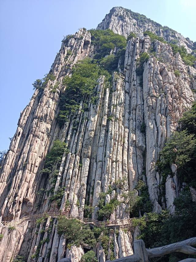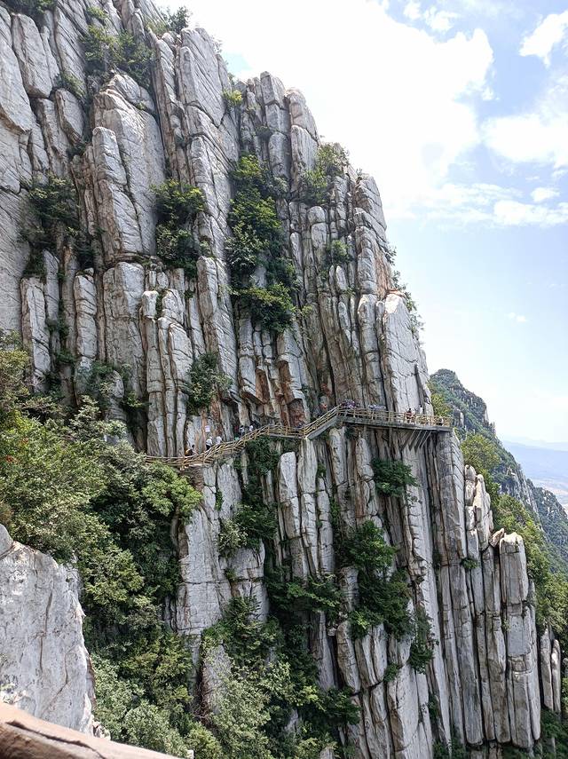 书册崖的山石确实比较奇特,仿佛被缀连的竹简或木牍,绿植、栈道和游人好似编简牍的绳索。