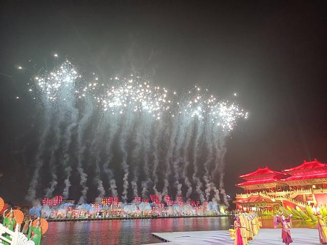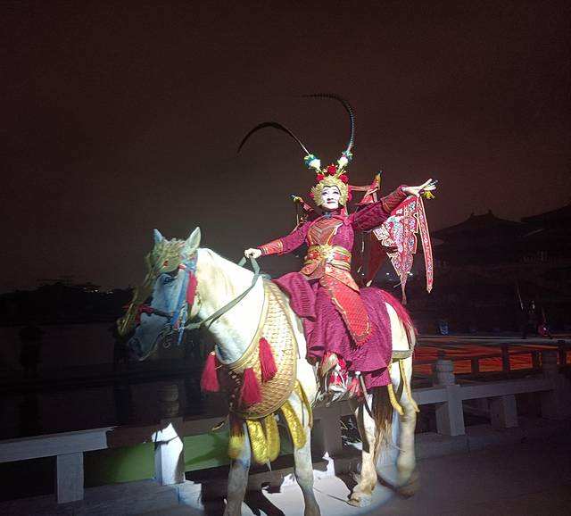 大型水战演出,非常震撼,真的有火炮炸船和弓箭。就是人太多了,得提前二十分钟占位吧,我只找到战鼓背面的位置,听了大半场演出$$