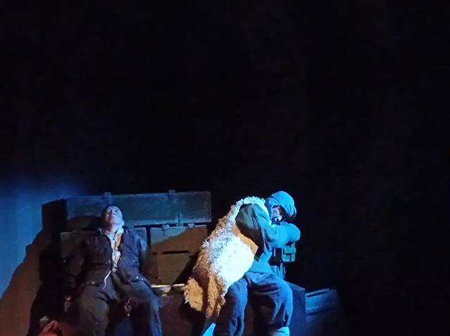 第二幕我们被指引进一个个随机独立的小剧场,在所有人坐定后,演员才会开启表演。这时我们了解这些饥民带头人去火车站要/抢粮的原因,大量的饥民(演员)会带着我们这些新的饥民一起去要粮,他们托家带口,穿着破旧麻衣佝偻着行进,这让观众的代入感极强。