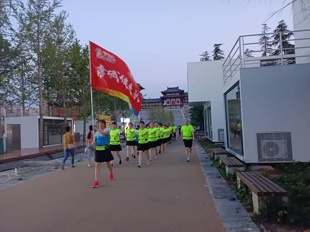 迎面走来的是唐城健走队,他们的步伐坚定,身姿挺拔...好吧,我只想说看过那么多广场舞队伍,这个健走队的气势真的强,不喊口号也能那么齐,被他们的生活热情感染到啦~