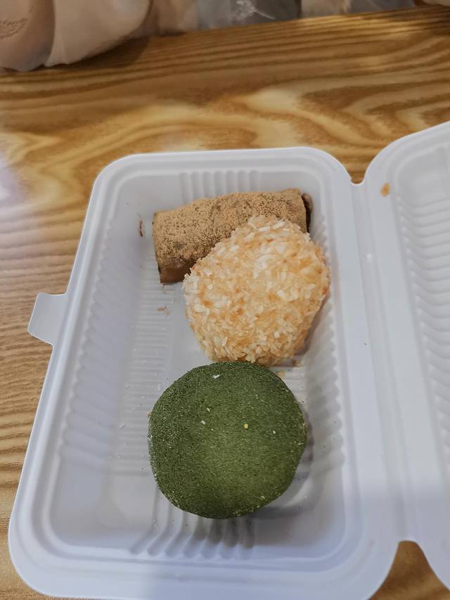 粟米、牡丹花、绿茶、抹茶、豆沙等做的牡丹糕点,就叫他们“黄牡丹”、“绿牡丹”和“棕牡丹”吧。口感比一般的糯米做的糕点要黏一些,也是没吃过的味道~小吃街上还有很多牡丹花做成的果脯,鲜花饼、雪花酥等小糕点,整体价格不高,可以尝尝鲜的。