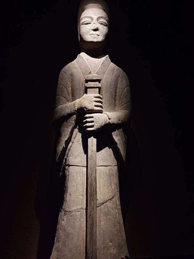 石翁仲(文臣):古代帝王墓前的石雕人物,文臣持简,武臣持剑。