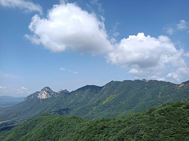 我在三皇寨景区入口处遇到了特别礼貌但热情的小马和舍命陪儿子爬山的马叔叔,他们正好缺一个人一起坐景区交通车。于是我们结伴而行,爬山主要集中在好汉坡,刚开始我忘记吃早饭,又好久没爬山,很快就气喘吁吁,就让他们先爬,我在后面慢点。后来我估摸着小马和马叔叔应该走远了,休息的时候试探性对着山谷大喊一声:“啊,我好累”,正准备说第二句:“我要脱单!”一起上山的小马大喊回应:“啊,加油爬,很快到南天门了”。当时真的吓到我了,还好我没喊出来后半句话。之后山坡比较缓,我追上了在前面的小马和马叔叔,爬到三黄寨后他们打算原路返回,我又继续一个人向少林寺方向走。然后又遇到一个旅友“大朋友”,他非常惊讶地问:“你怎么一个人爬山?”,我回了一句:“你不也是一个人爬吗?”,他又说到:“他是男的不一样”。其实除了体力带来的安全问题,我觉得旅游没有男女之分的。我和大朋友一边爬山一边交谈,得知他已经爬了好多座山,每座山还去了好多次(黄山也就爬了十几次吧),这次为了捕捉到嵩山上最好的风景,提前6天来嵩山附近住着等一场雨。他还准备了三个手机和一个相机用来摄影。后来我们和秋秋汇合了,大朋友给我和秋秋分享了他拍的各地照片和视频,给我们推荐cctv直播中国(实时直播各景区的风景)。我们都很羡慕他的旅行状态,希望能早日实现相对的经济和时间自由,慢慢地看风景。