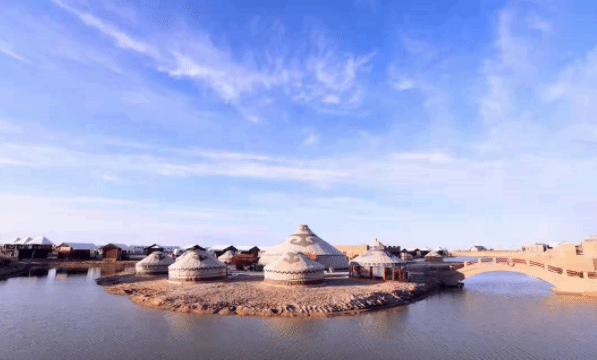 在看完大漠胡杨美景后,就要去尝试当地的美食,在景区大门处就有一家蒙古特色的主题餐厅。餐厅是蒙古包建造,体积非常大,容纳250人轻轻松松。在这里我们可以品尝到骆驼肉、牛肉干、内蒙奶制品以及羊肉卷等当地特色美食。满足口食之欲后就轻轻松松地回到酒店休息。