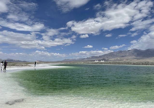 将近6个小时车程,终于到达目的地。大柴旦翡翠湖位于青海省海西蒙古族藏族自治州大柴旦行政区大柴旦镇境内,是大柴旦独特的盐湖风貌,翡翠湖”属硫酸镁亚型盐湖,是海西州第三大人工湖。由于盐床由淡青、翠绿以及深蓝的湖水辉映交替、晶莹剔透,当地人称之为“翡翠湖”。相比于茶卡盐湖来讲,翡翠湖知名度没有那么大,但是正因为开发迟,才保持了最自然最美的样子。