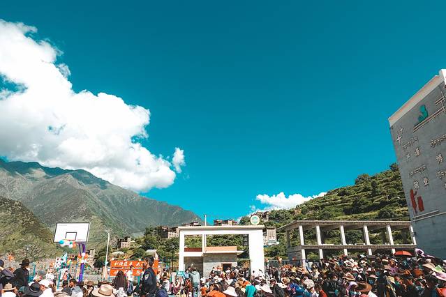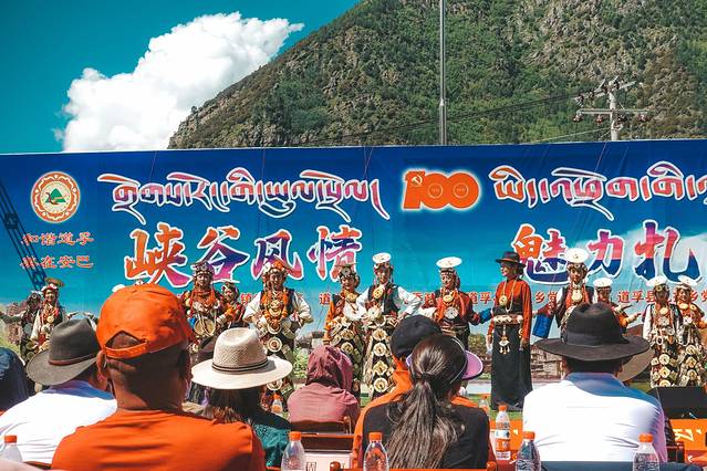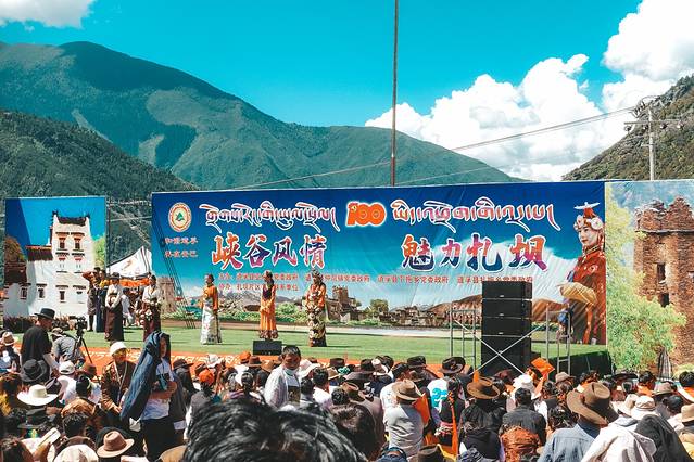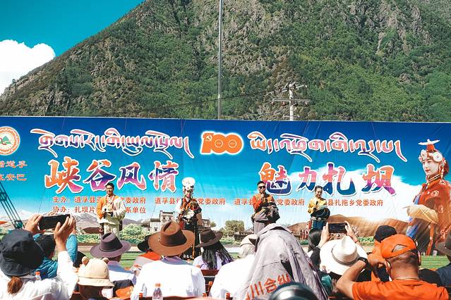 我们来到的时候正赶上亚卓镇举办首届选美大赛,借着一年一度安巴旅游节的契机,扎坝分会场也是特别的热闹,这些来自各个村落的藏族美女代表,经过自我介绍、才艺展示、家乡代言三个环节来展现自己的个人魅力,举办地点就是当地的一所学校。